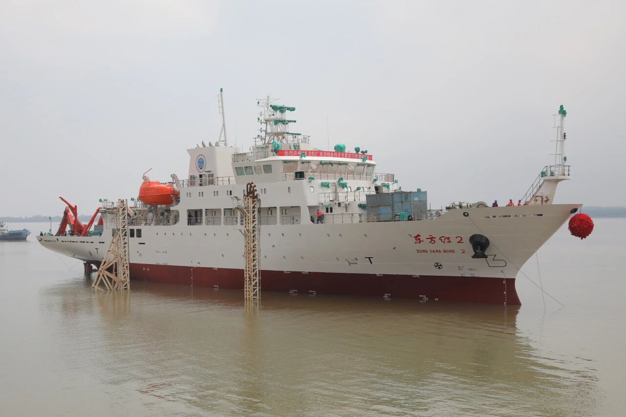 近日,由中国船舶集团有限公司七〇八所负责现代化大修改造设计、武昌造船负责改造施工的“东方红2”号海洋综合科考实习船(中国海洋大学所属)顺利下水,标志着这艘有着27年辉煌业绩的科考船已基本完成改造,即将以全新姿态继续投身于我国海洋科教事业新征程。