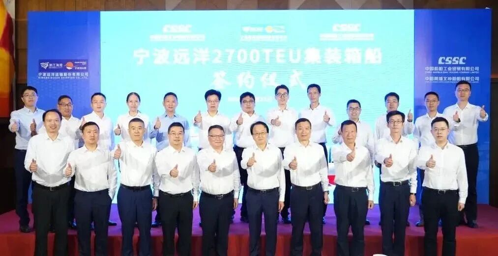 10月21日,中船集团旗下黄埔文冲联合中船贸易,与宁波远洋运输股份有限公司正式签署4艘2700TEU集装箱船的建造合同。此次签约的集装箱船均由中船集团旗下上船院设计,采用先进的设计理念和环保技术,以满足宁波远洋对船舶高效、经济、环保的要求。