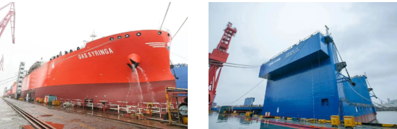 1月31日,外高桥造船建造的15.8万吨苏伊士型原油船H1589船及7000TEU集装箱船H1656船顺利下坞。