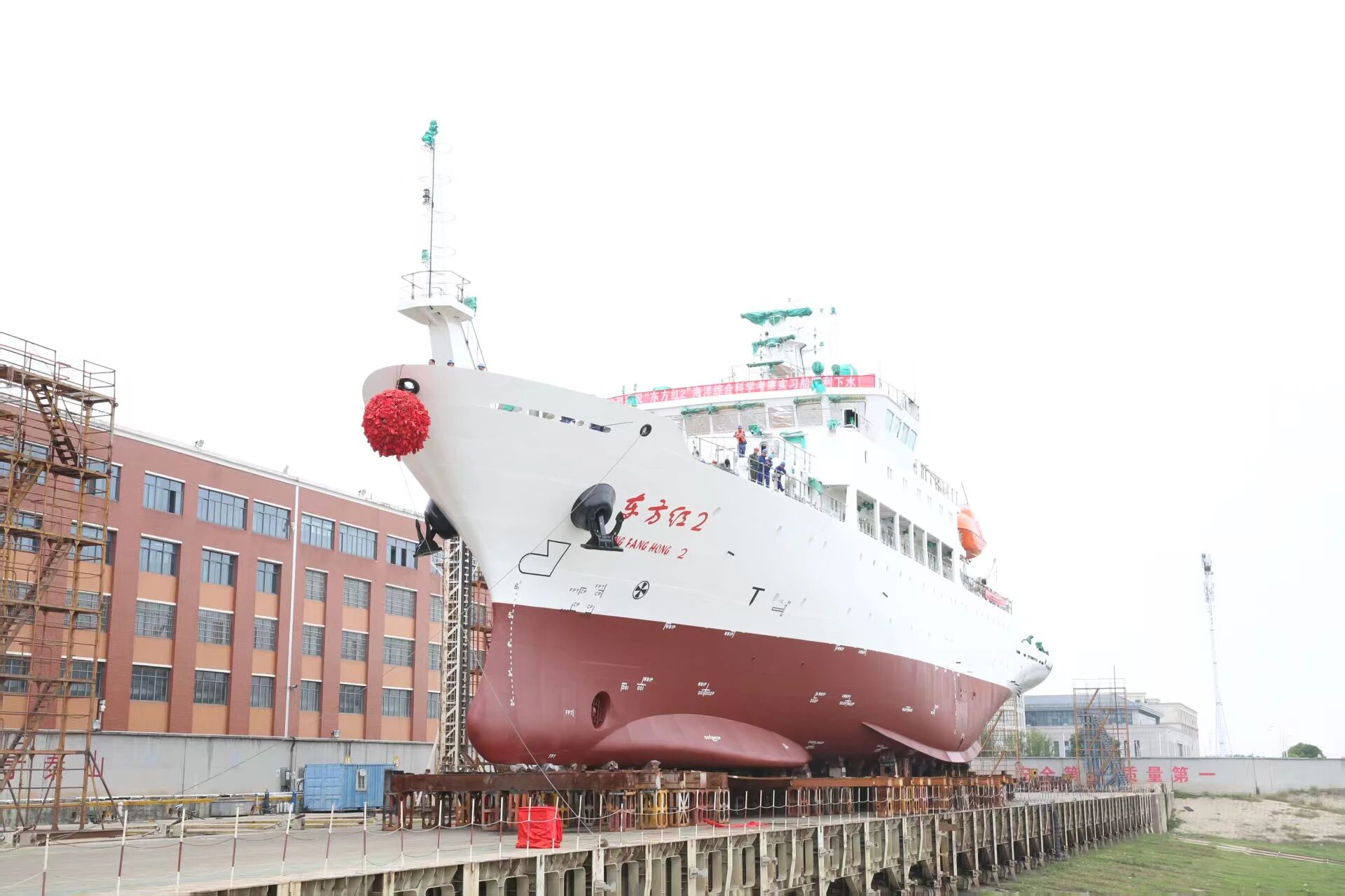 近日,由中国船舶集团有限公司七〇八所负责现代化大修改造设计、武昌造船负责改造施工的“东方红2”号海洋综合科考实习船(中国海洋大学所属)顺利下水,标志着这艘有着27年辉煌业绩的科考船已基本完成改造,即将以全新姿态继续投身于我国海洋科教事业新征程。