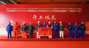2月27日,大连造船建造的11.5万吨成品油船65号船和93号船、11.5万吨原油船11号船、LNG双燃料动力30.7万吨原油船113号船共4艘船舶同日开工,以奋斗姿态全力开启马年新征程。